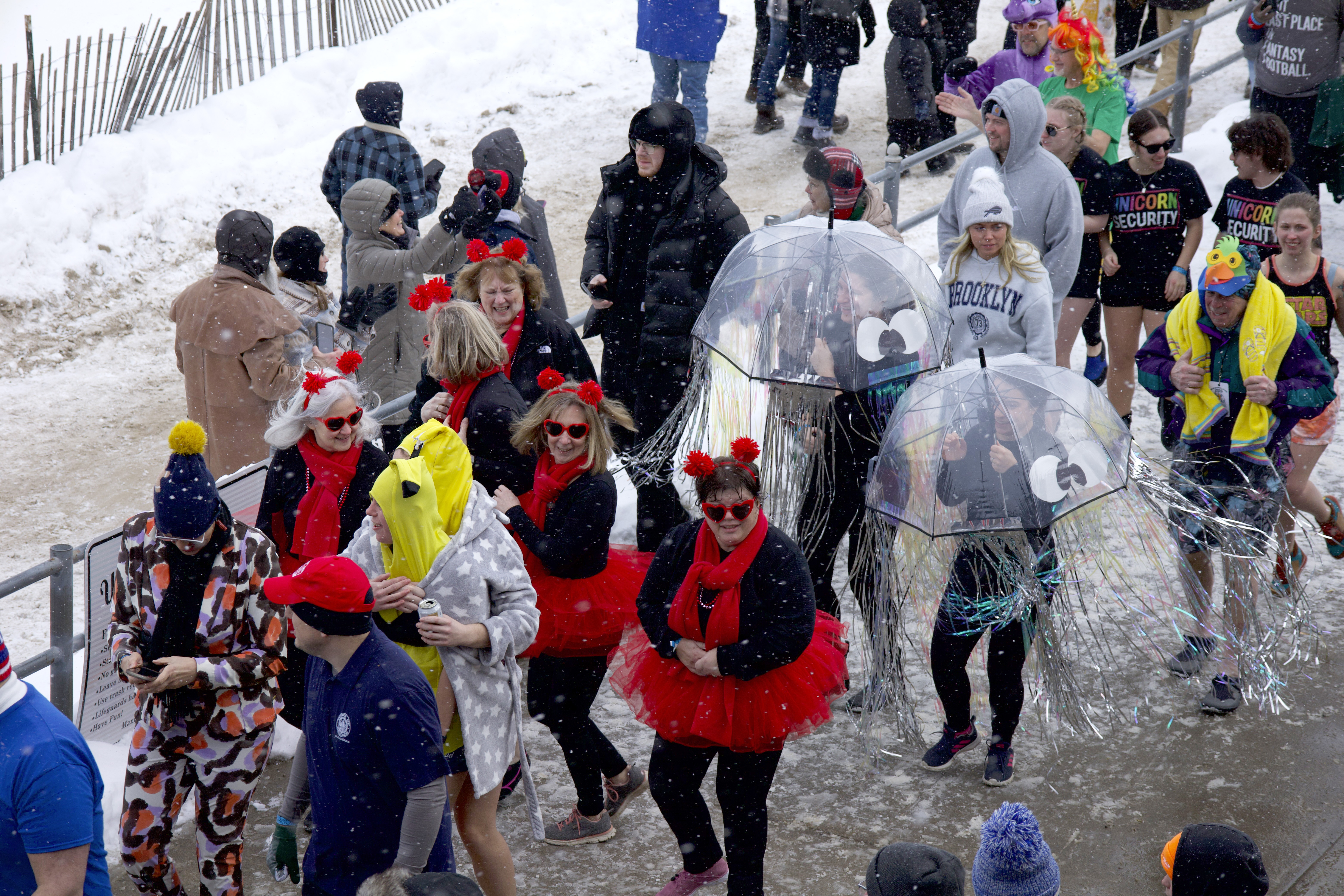 Ontario Beach Park was blanketed with a fresh batch of snow, the winter storm from the past week barely letting up. The skies were overcast as it continued to softly snow and the biting gusts of wind helped set the scene for the 25th annual Polar Plunge.